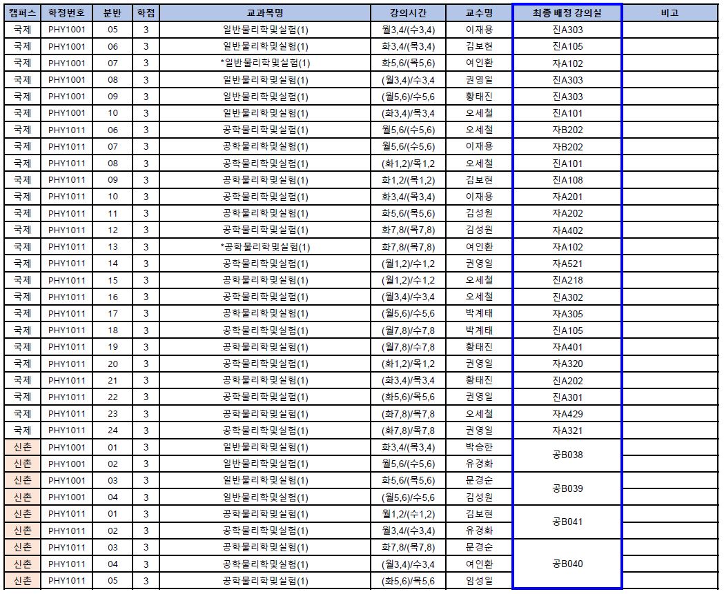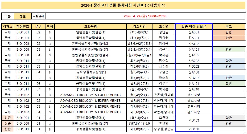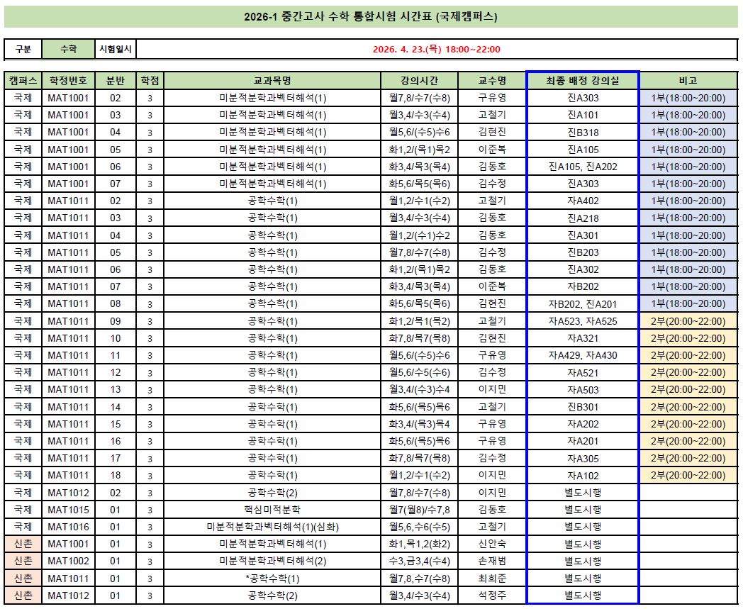 (시험 강의실은 변경될 가능성이 있으니 시험일 전까지 수시로 확인하시기 바랍니다.)