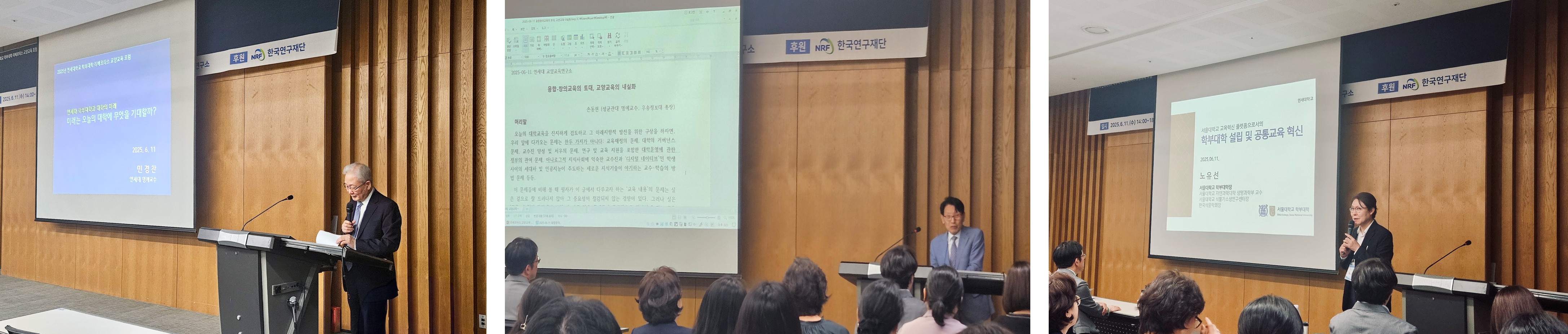 기조강연에서는 민경찬 연세대 명예교수가 「연세대 학부대학과 대학의 미래 – 미래는 오늘의 대학에 무엇을 기대할까?」라는 주제로, 연세대 학부대학의 역사를 돌아보며 인공지능 시대와 사회 변화 속에서 진정한 인재 양성을 위해 대학이 갖춰야 할 교육적 비전과 핵심 역량을 제시했다. 이어 손동현 우송정보대학교 총장은 「교양교육의 내실화, 융합-창의교육의 토대」를 주제로, 융합적 사고와 창의력 함양을 위한 교양교육의 구조적 혁신 필요성을 강조했다.