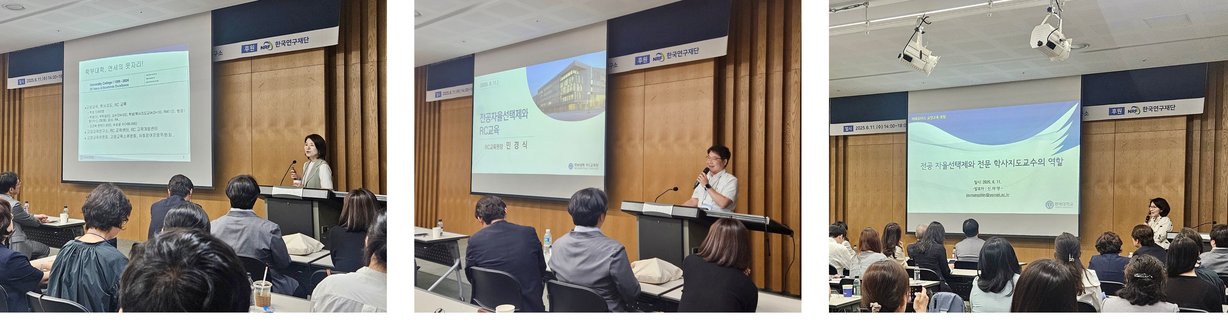 후반부 세션에서는 연세대학교 학부대학 교수진이 주제 강연을 통해 연세대학교 교양교육의 성과와 비전을 구체화하였다. 이보경 교수는 「연세대학교 교양교육의 과거, 현재, 미래: 도전과 비전」을, 민경식 교수는 「전공자율선택제와 RC교육」을, 신자영 교수는 「전공자율선택제와 전문 학사지도교수의 역할」을 주제로 연세대학교 교양교육의 현황과 미래 설계 방향을 심도 있게 논의하였다.