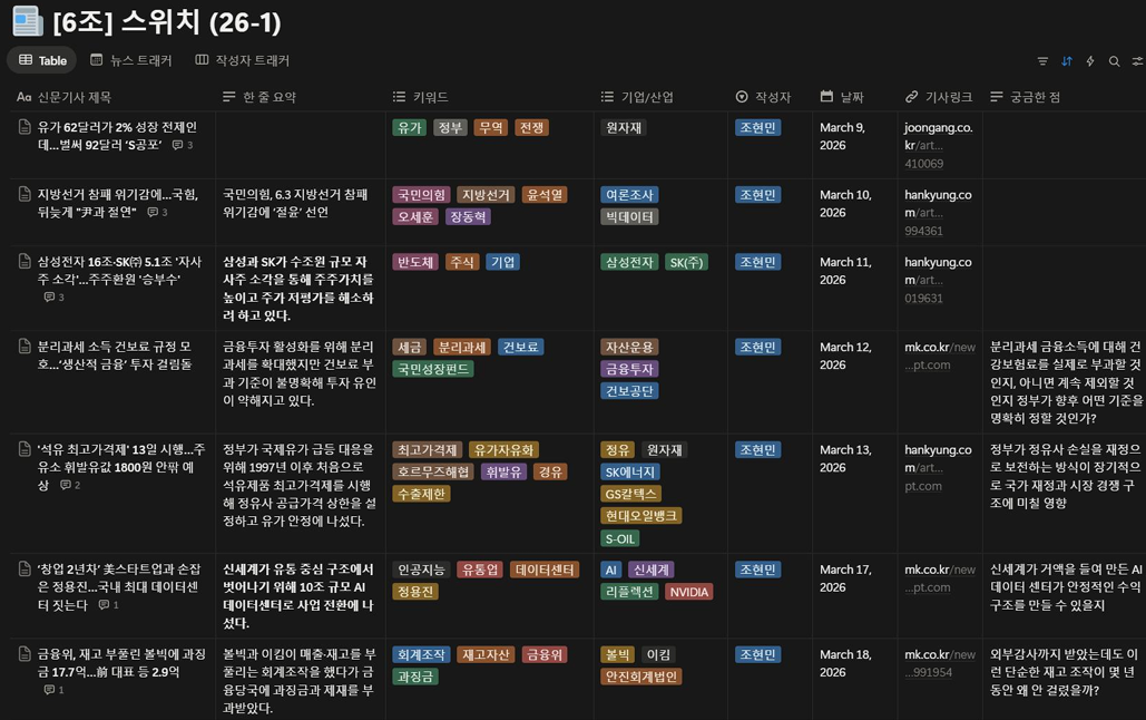 프로그램은 OT를 통해 노션 활용법과 뉴스 스크랩 작성 가이드를 안내한 뒤, 2주간의 챌린지로 이어졌다. 참여자들은 평일마다 1~2개의 기사를 읽고 ‘3줄 요약, 용어 정리, 개인 인사이트’를 기록하였으며, 팀원 간 댓글을 통해 서로의 생각을 공유하고 피드백을 나누었다. 이 과정에서 시사 상식에 대한 지식만이 아니라, 같은 사건을 바라보는 다양한 시각과 배경 지식을 참조할 수 있어 생각의 폭을 넓히는 데 큰 도움이 되었다. 한 참여 학생은 “뉴스를 꾸준히 읽는 것이 쉽지 않았는데, 팀원들과 함께하니 자연스럽게 습관이 형성되었다”고 말했으며, 또 다른 학생은 “같은 기사를 보고도 다양한 관점이 나와 흥미로웠고, 시야가 넓어지는 느낌을 받았다”고 소감을 전했다. 또 기사는 팀별로 선정하여 추적하는 것이었기 때문에, 평소 자신의 관심사가 무엇인지도 확인할 수 있는기회가 되었다.