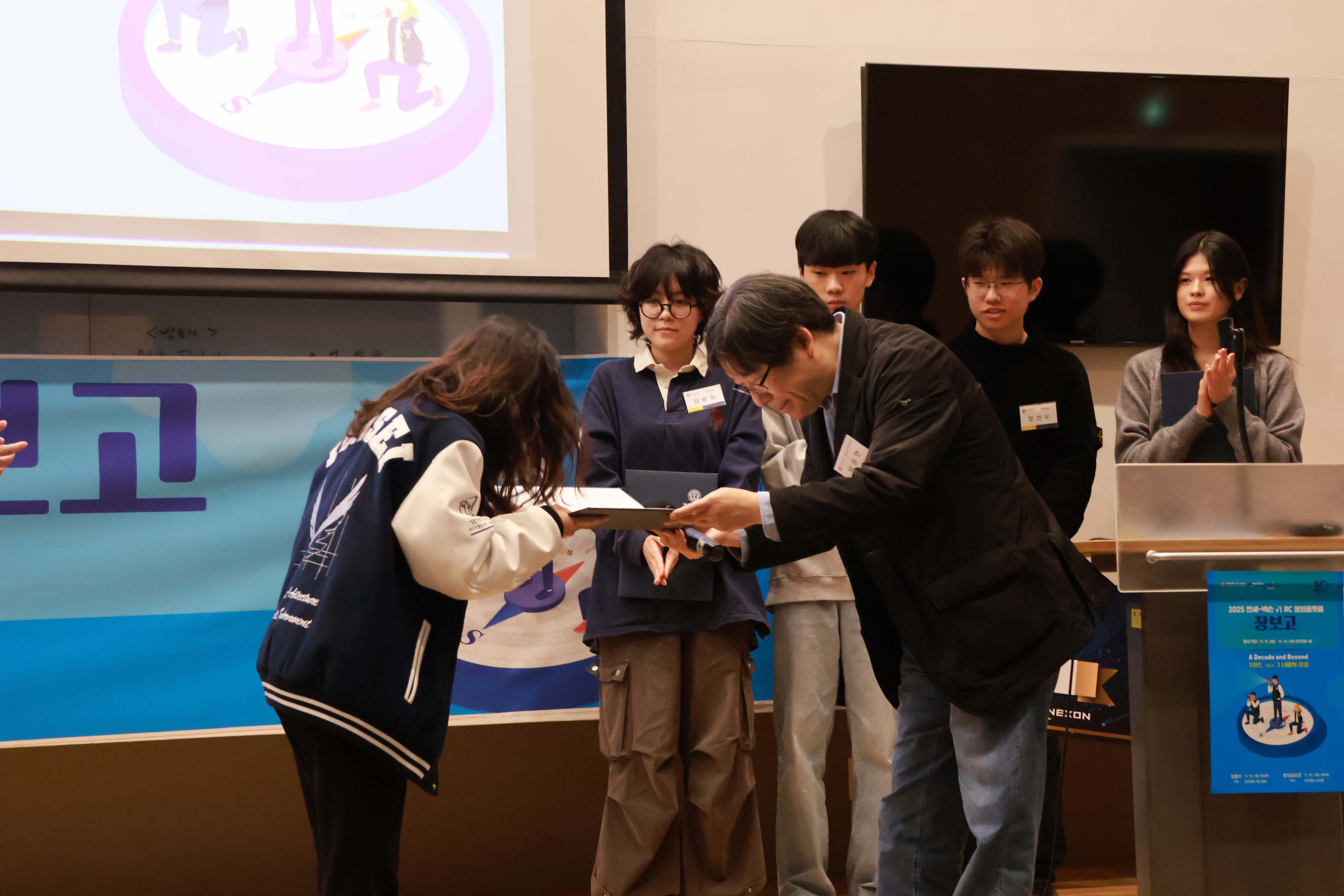 11월 25일 화요일, 연세대학교 국제캠퍼스 진리관A 101호에서 2025 <연세-넥슨 √i RC 창의플랫폼> 프로그램의 최종 발표회인 창의공모전 및 시상식이 개최되었다. <연세-넥슨√i RC창의플랫폼>은 ㈜넥슨코리아의 후원으로 다양한 전공의 1학년 학생들이 팀을 이루어 사회가 당면한 문제를 해결하는 창의적인 아이디어를 기획하는 프로그램으로, 2016년 시작되어 올해로 열 번째 해를 맞았다. 이번 행사에서는 창의플랫폼이 지나온 10년의 여정을 돌아보고, 창의공모전에서 우수한 성과를 낸 5개 팀을 시상하였다.