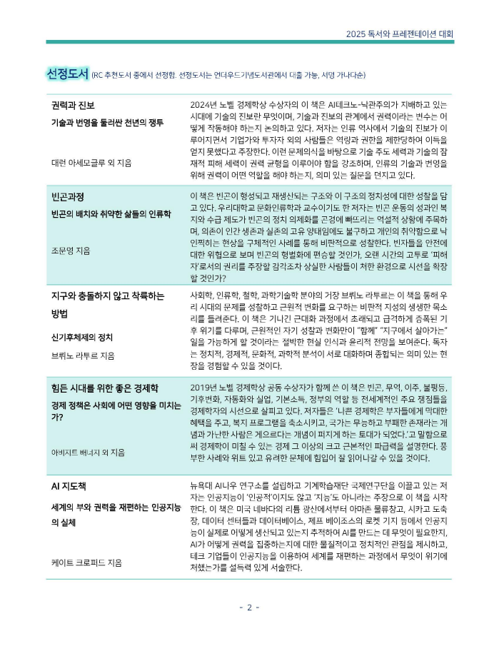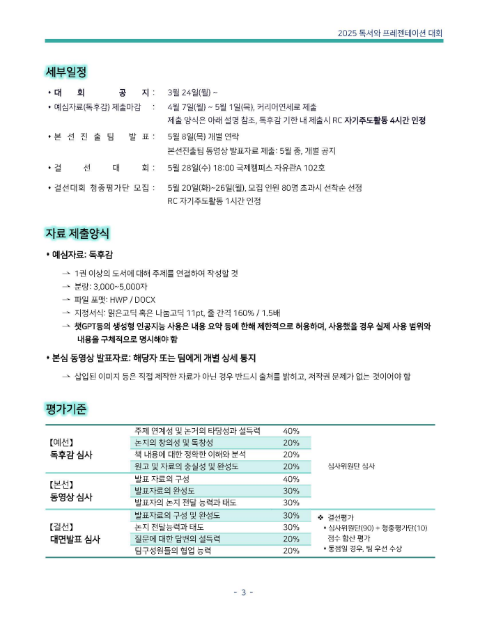 2025 독서와 프레젠테이션 대회 신청자 모집 안내