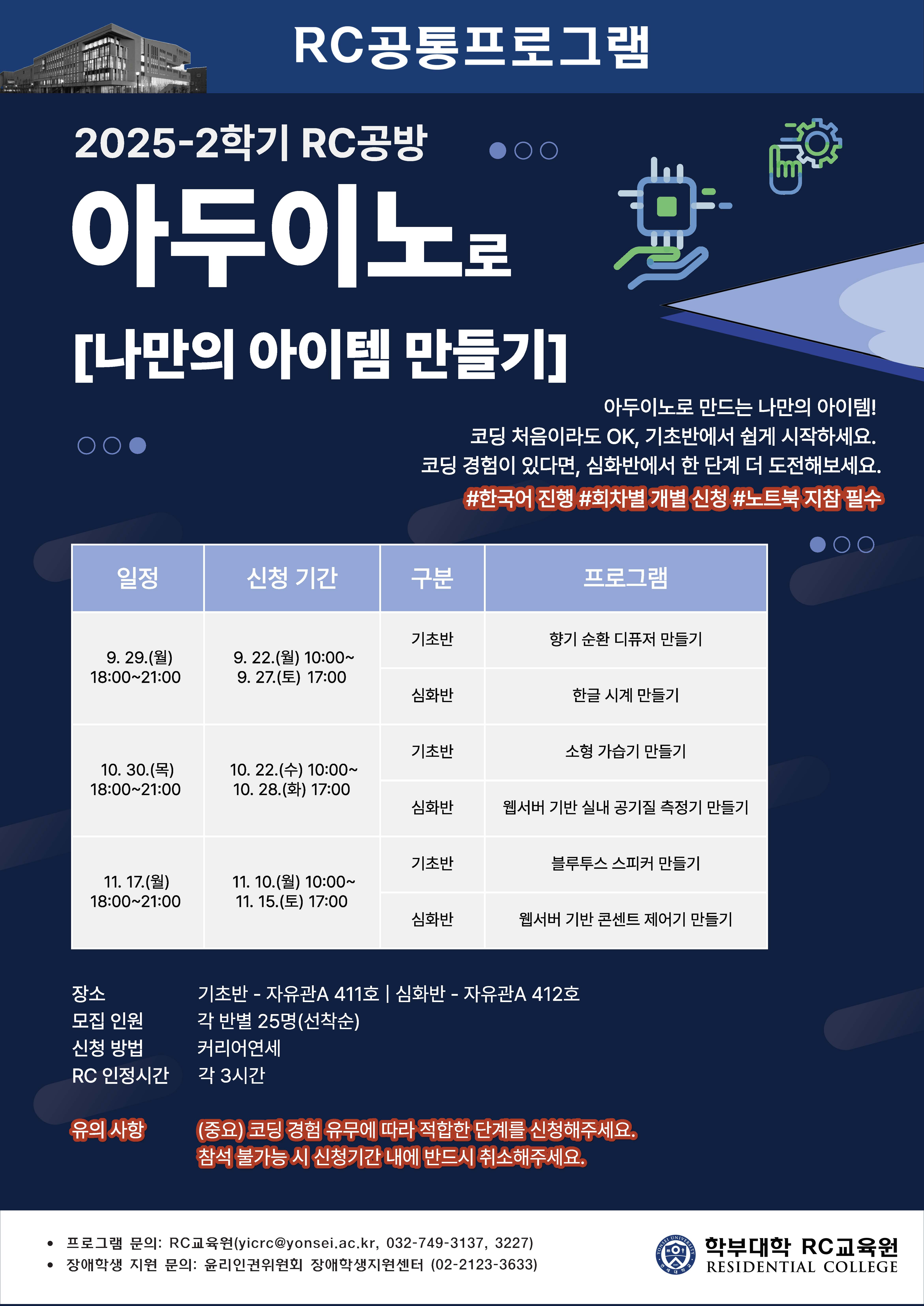 2025-2학기 RC 공방 <"아두이노"로 나만의 아이템 만들기> 프로그램 안내