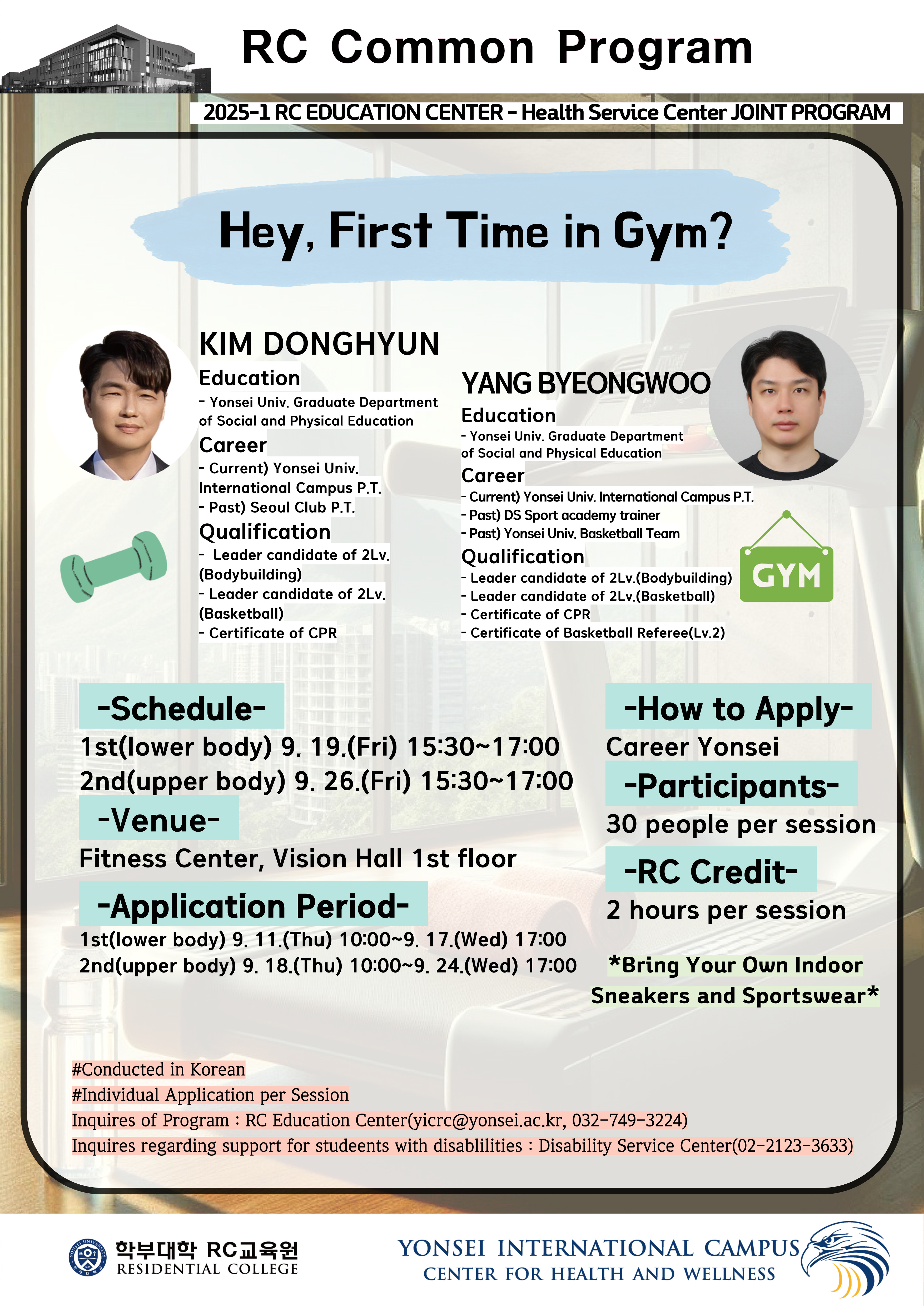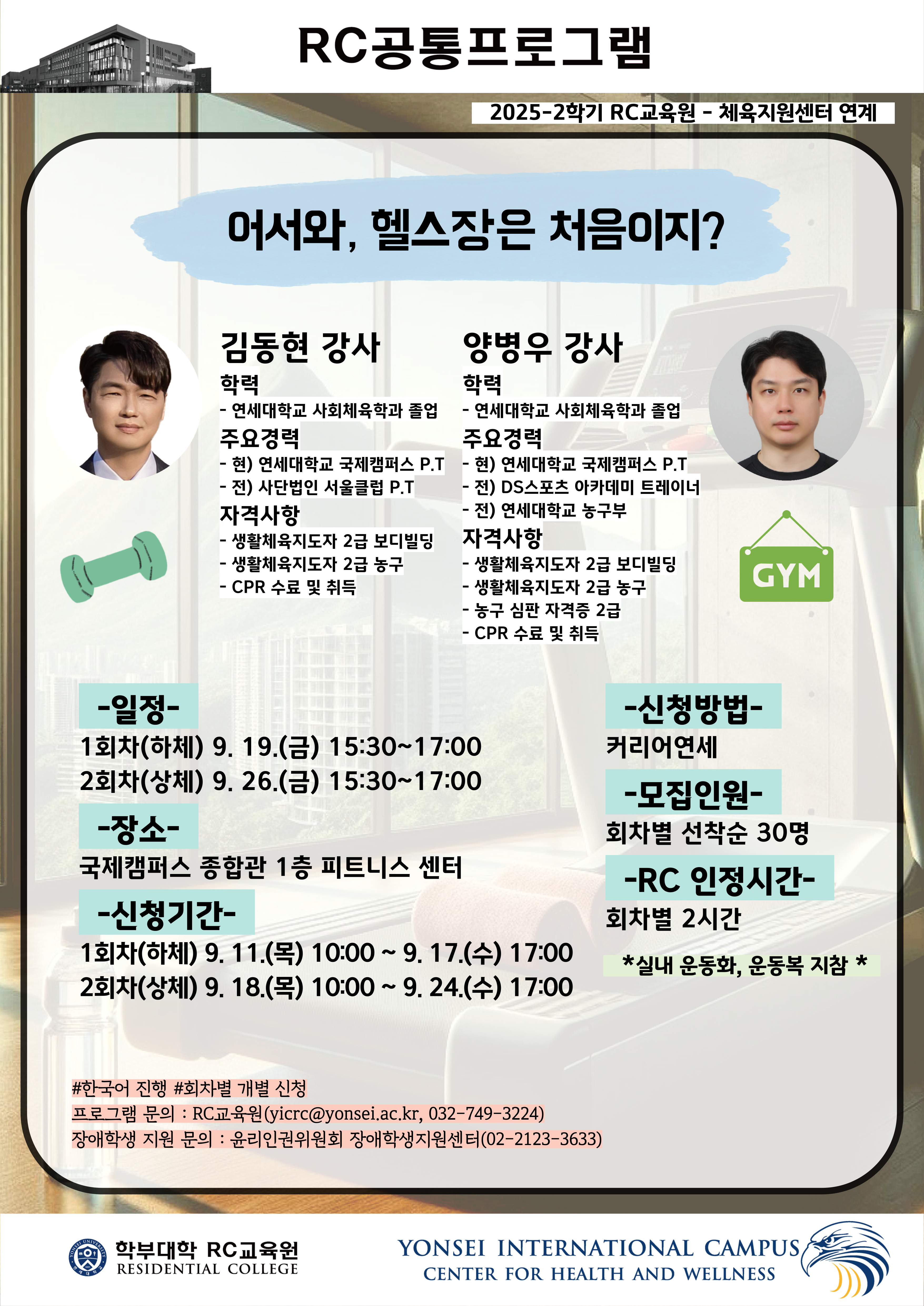 장소: 국제캠퍼스 종합관 1층 피트니스 센터