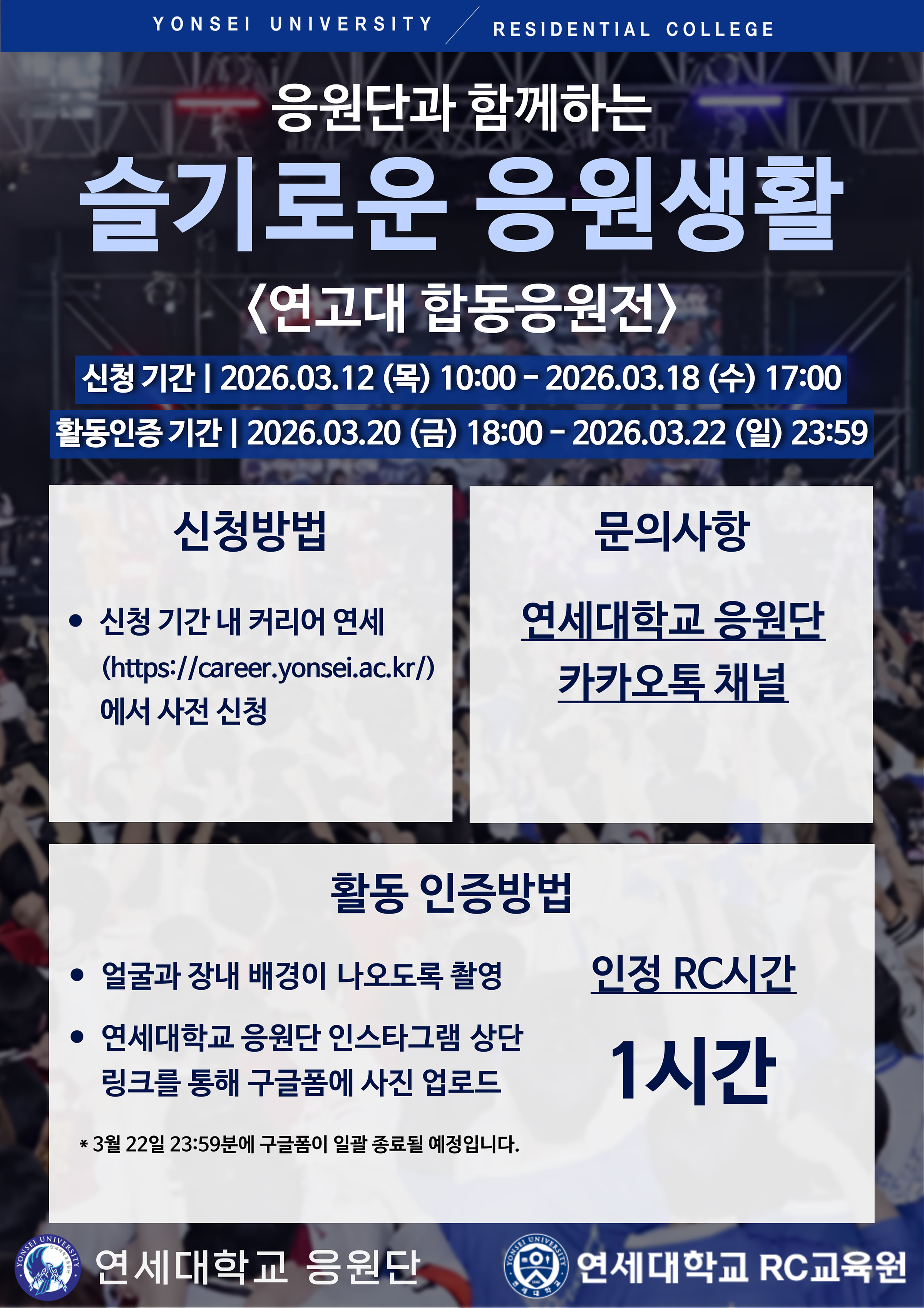 ✅문의사항: 연세대학교 응원단 인스타그램(@akaraka_yonsei) DM
