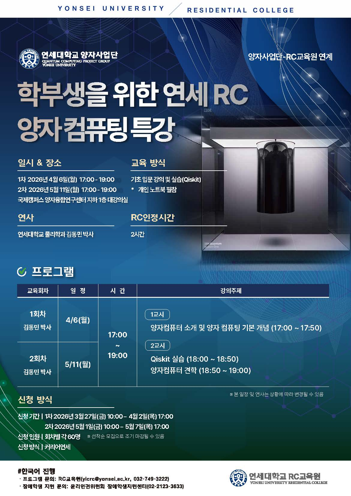 [양자사업단연계] 2026-1학기 학부생을 위한 연세 RC 양자컴퓨팅 특강