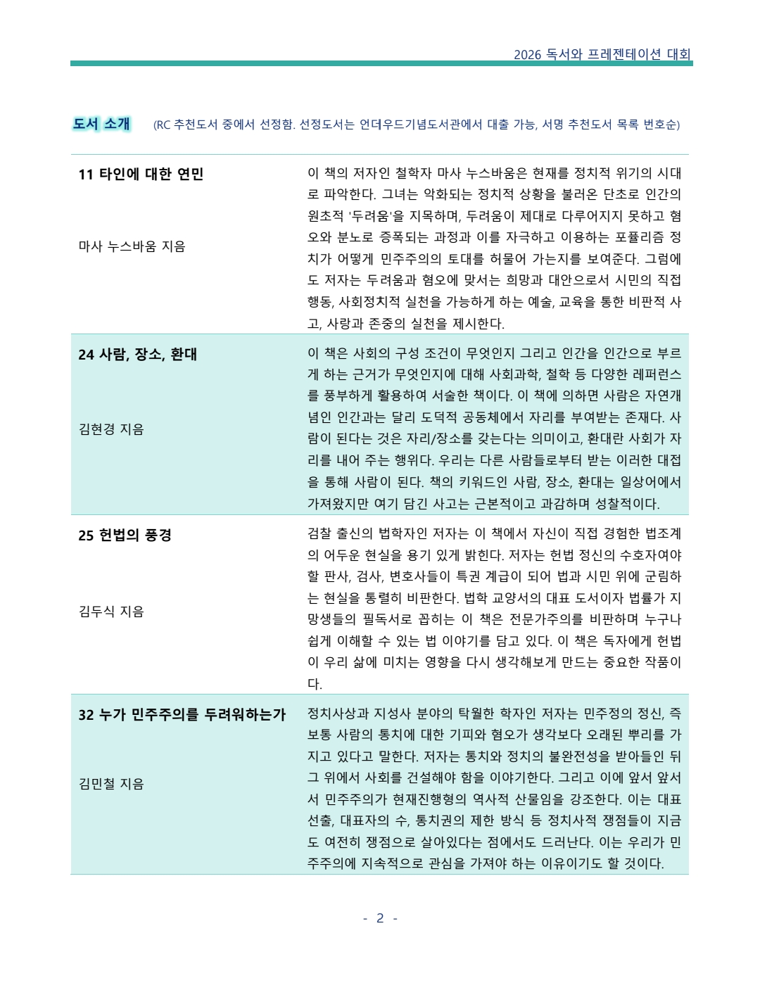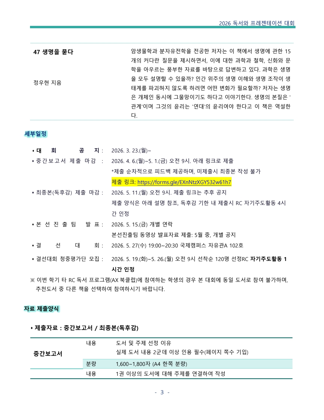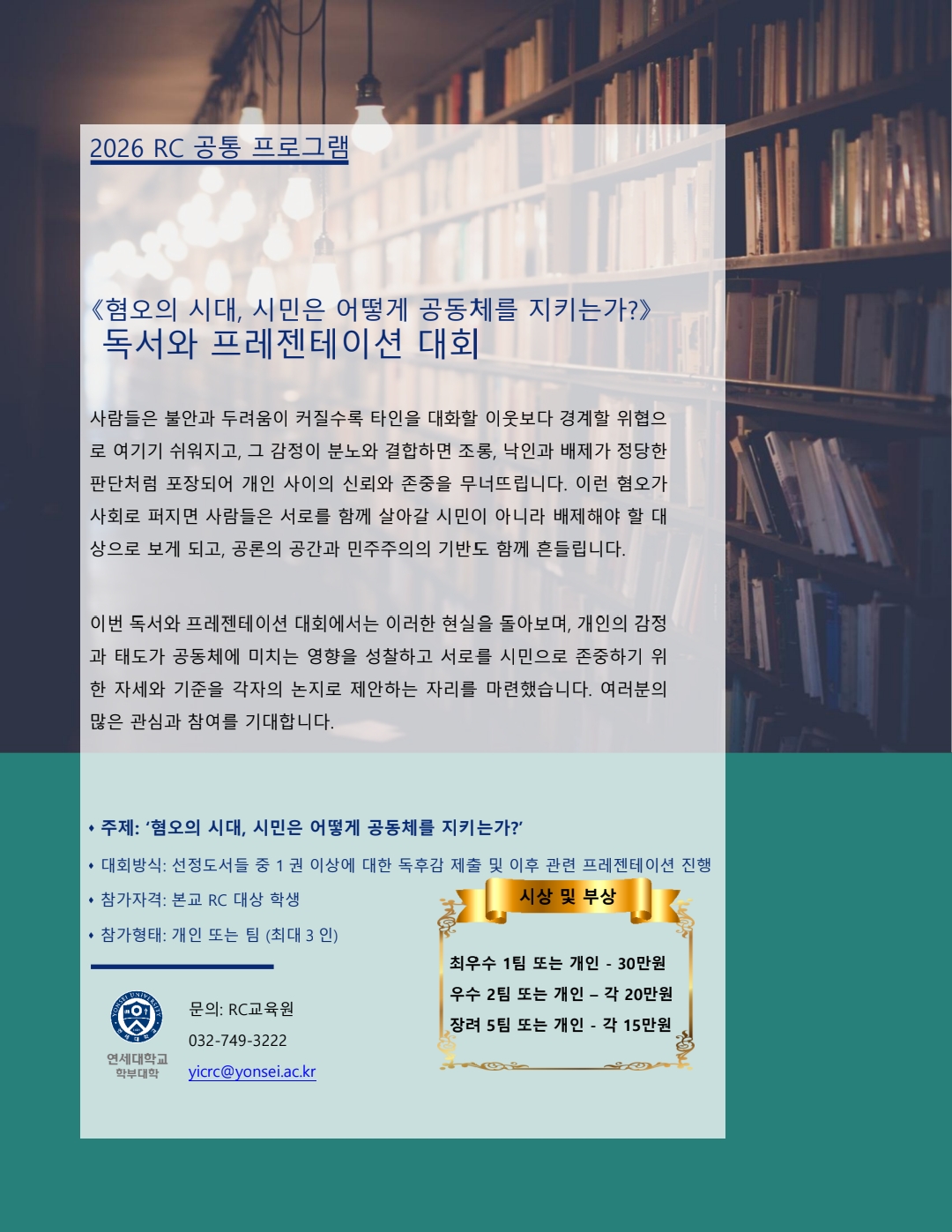 [RC교육원] 2026-1학기 독서와 프레젠테이션 대회