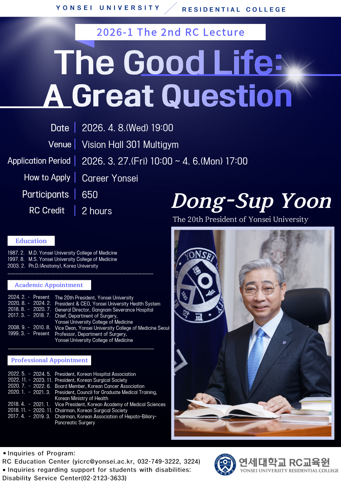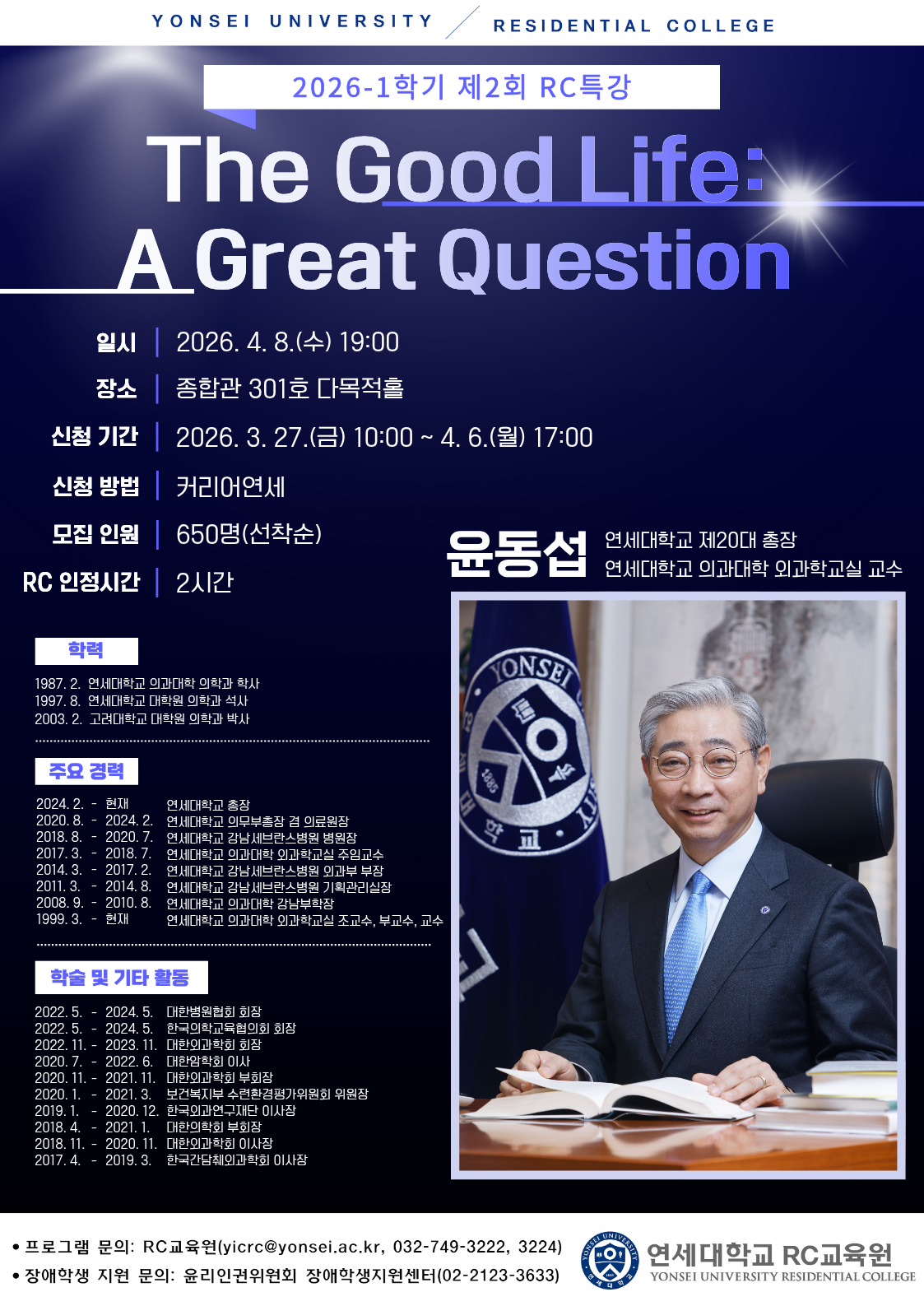 [RC공통프로그램] 2026-1학기 제2회 RC특강 <연세대학교 윤동섭 총장>
